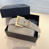 Saint Laurent Cassandre Belt In Black/Beige/Green Crocodile-Embossed Leather With Gold Hardware 30mm