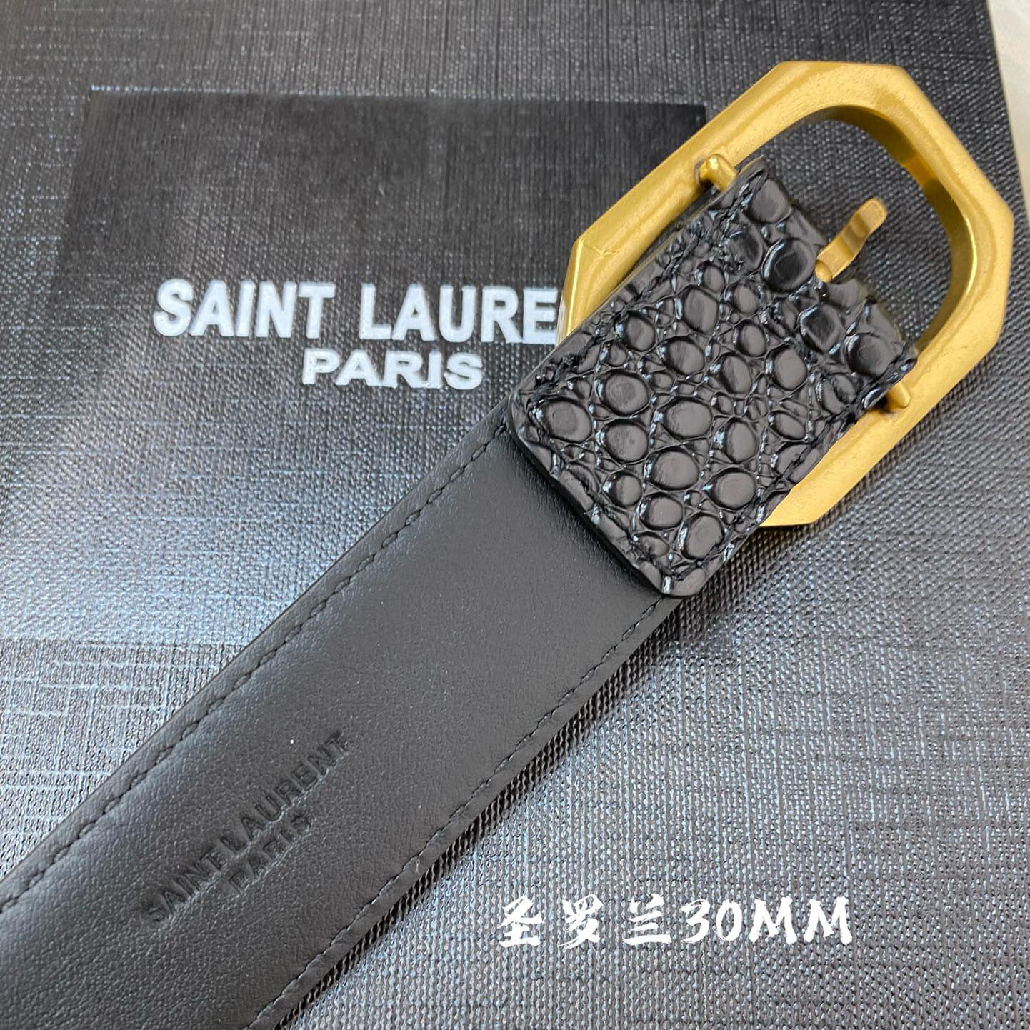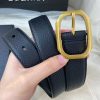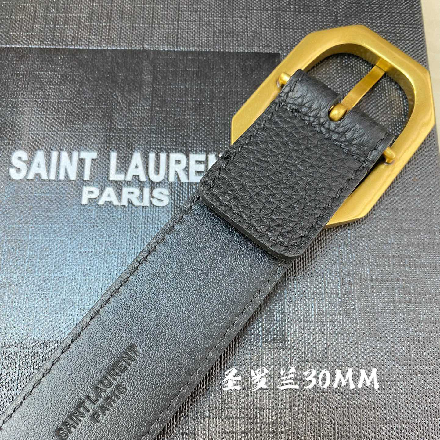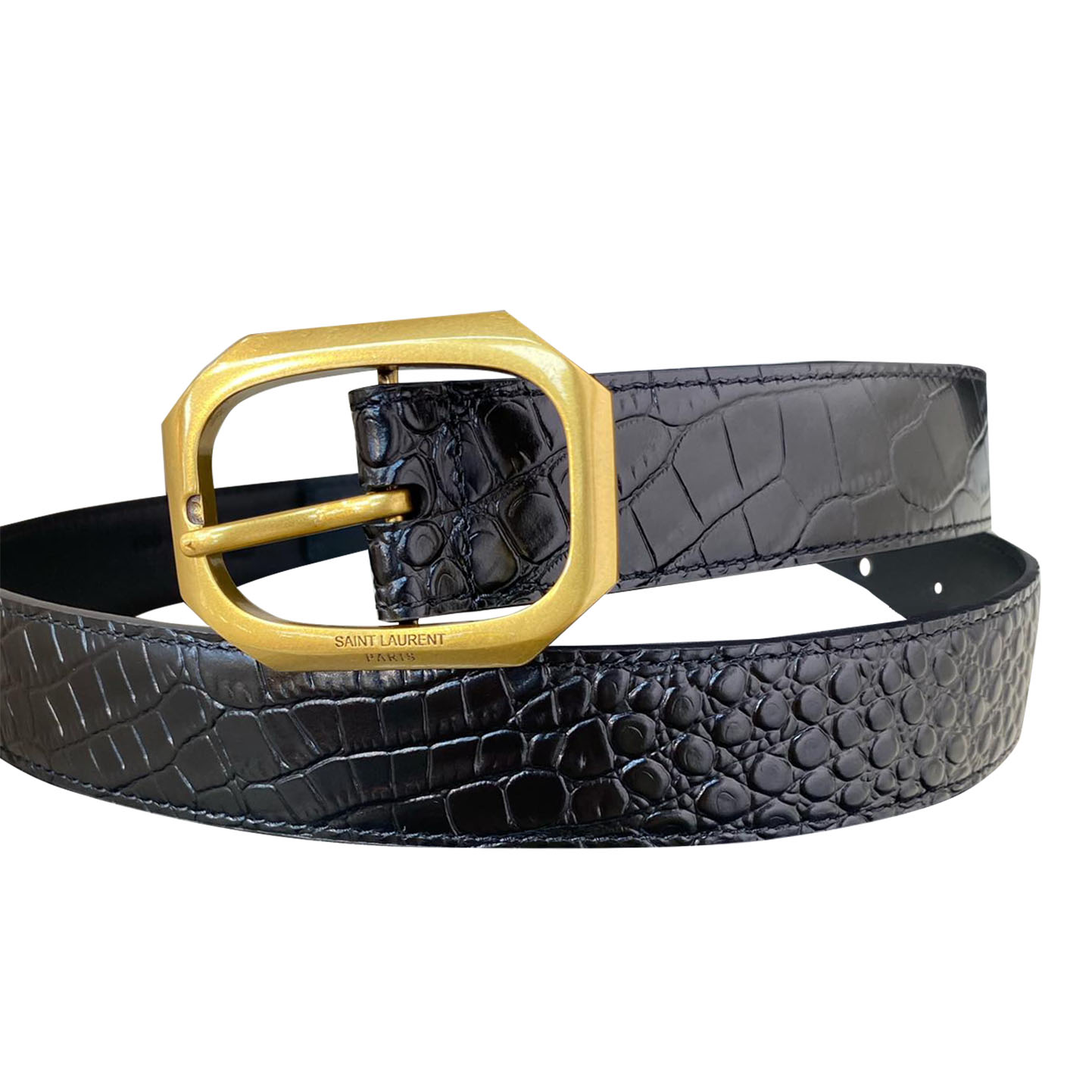 Saint Laurent Frame Buckle Thin Belt In Black Calfskin With Gold Hardware 30mm