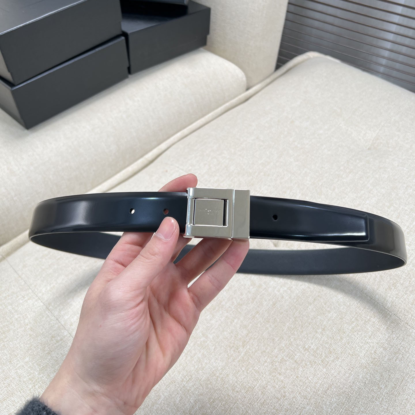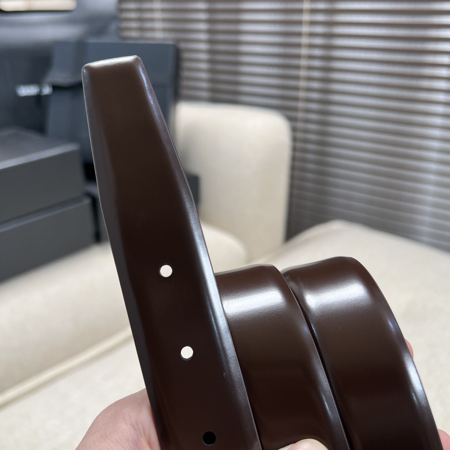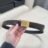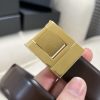 Saint Laurent LA 76 Belt In Burgundy/Black Smooth Calfskin With Gold/Silver Hardware 30mm