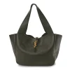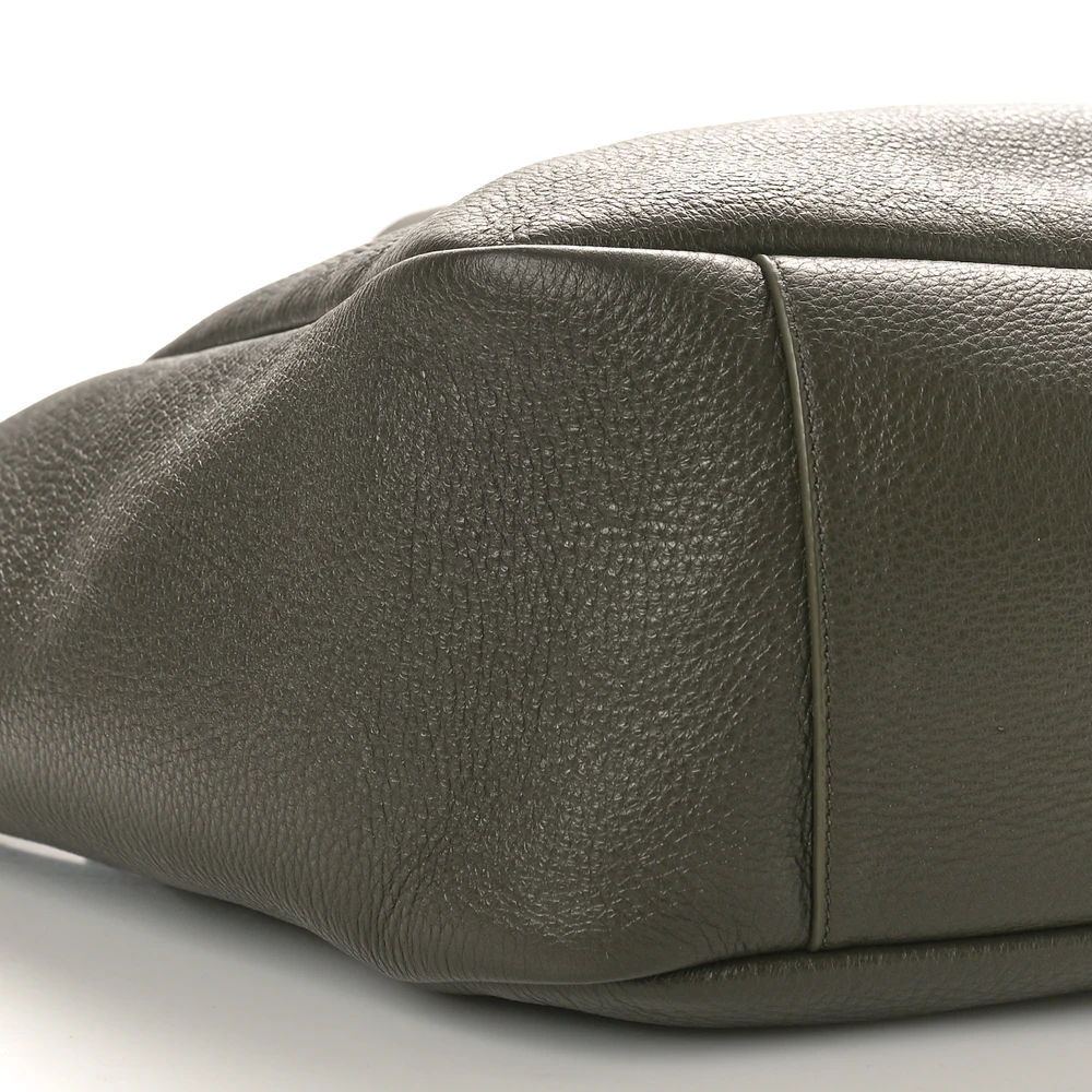 This Large Bea Tote in Green showcases Grained Deerskin Leather with aged gold hardware. The spacious interior makes it perfect for work or travel, while its structured design offers a sophisticated silhouette. The timeless leather and subtle branding ensure this tote is both stylish and functional.