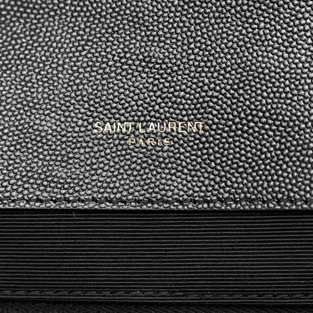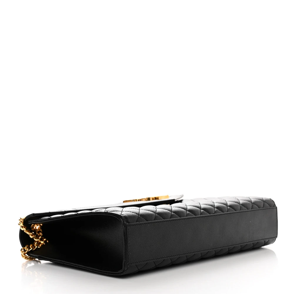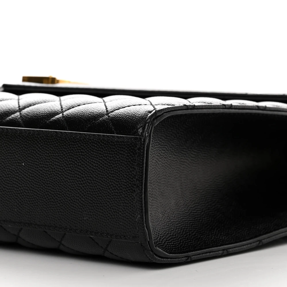 Saint Laurent Large Satchel Black Triquilt Monogram Grain De Poudre Textured Mixed Matelasse Leather Gold Hardware