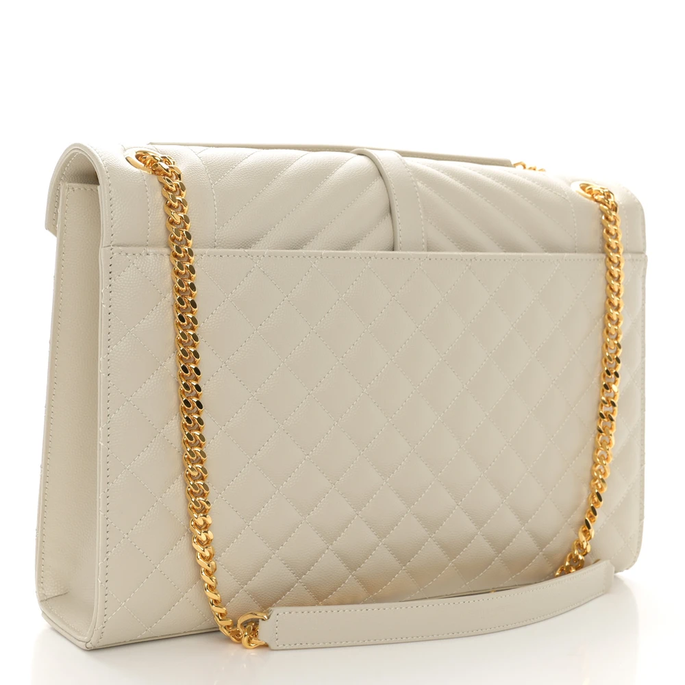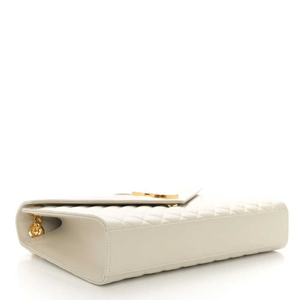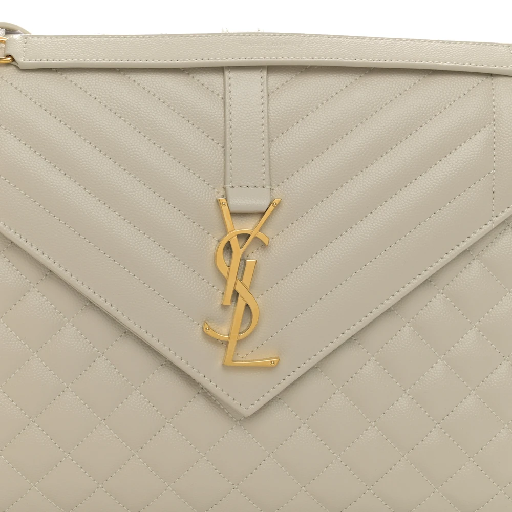 Saint Laurent Large Satchel Crema Soft Triquilt Monogram Grain De Poudre Textured Mixed Matelasse Leather Silver Hardware