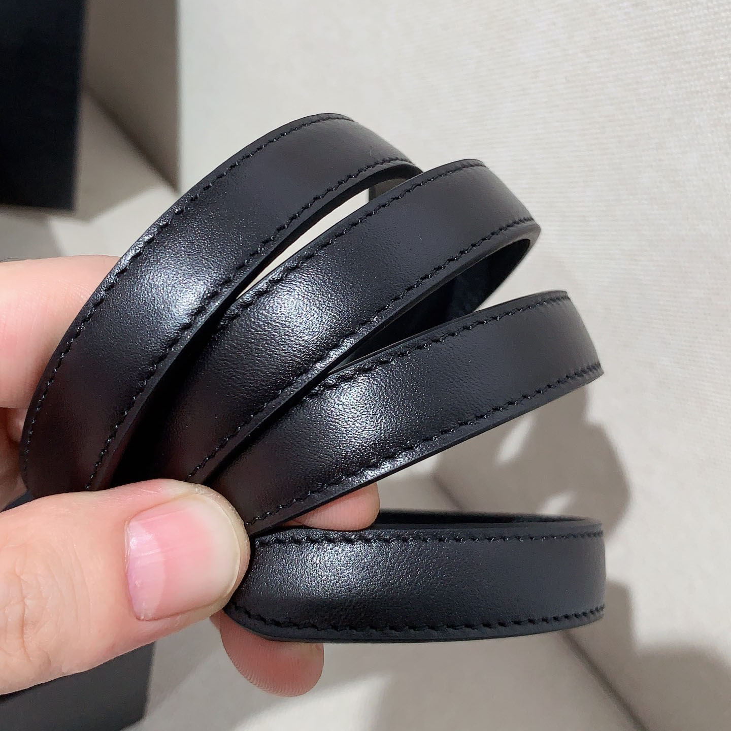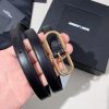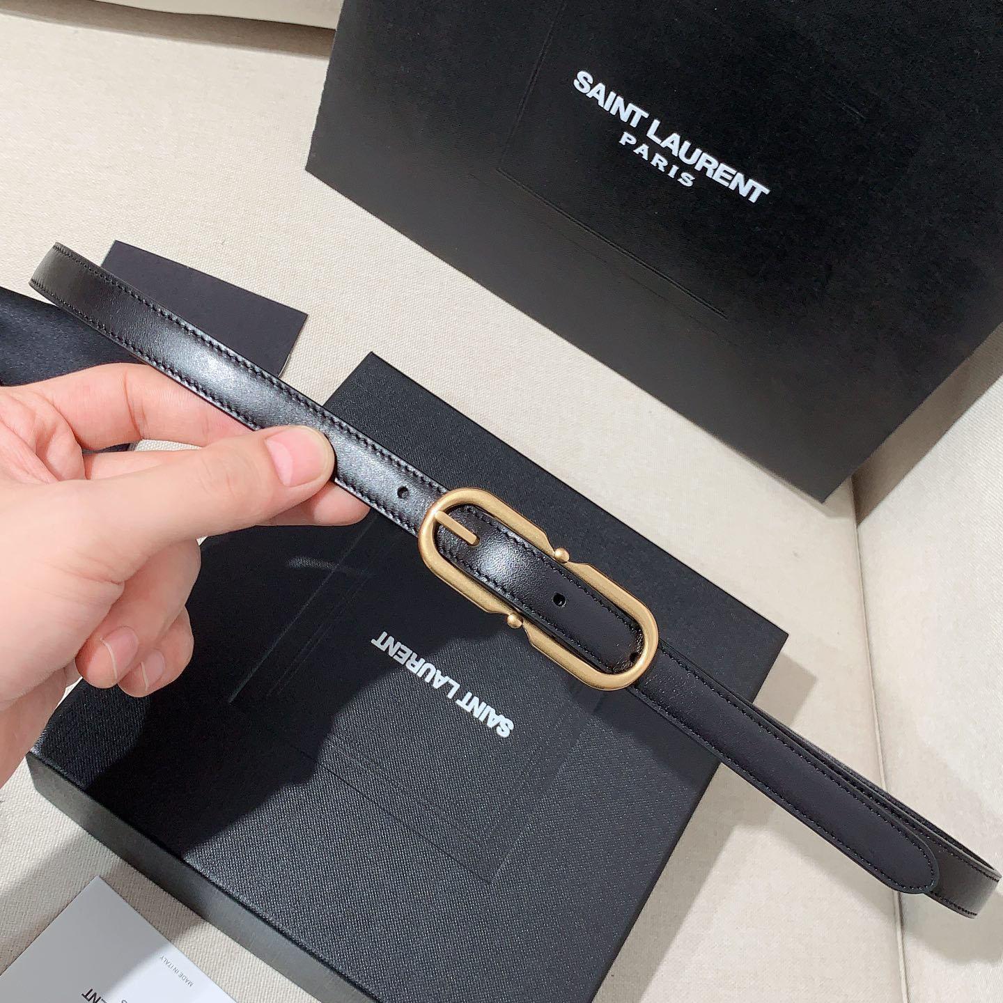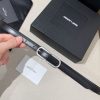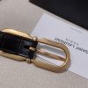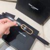 Saint Laurent Long Oval Buckle Thin Belt In Black Calfskin With Gold/Silver Hardware 15mm