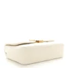 This Medium Jamie Bag in white features Crinkle Monogram Cotton Patchwork with aged gold hardware. Its artistic texture adds a unique flair to the classic design. The spacious interior and chain strap make it a practical and stylish choice. Perfect for casual outings or as a statement accessory.