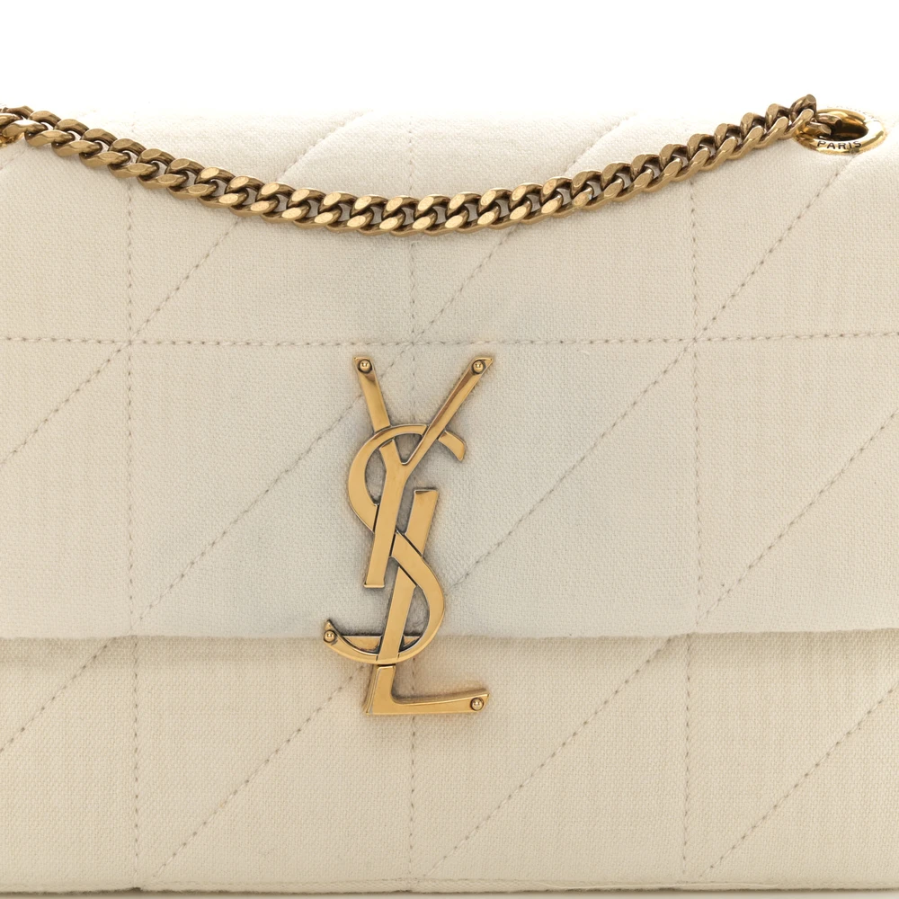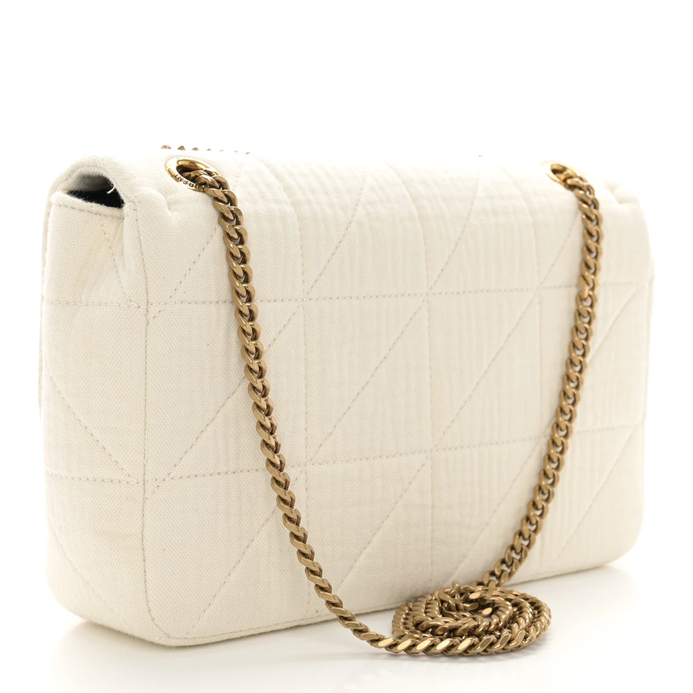 Saint Laurent Medium Jamie Bag Vanilla Ice Crinkle Monogram Cotton Patchwork Aged Gold Hardware