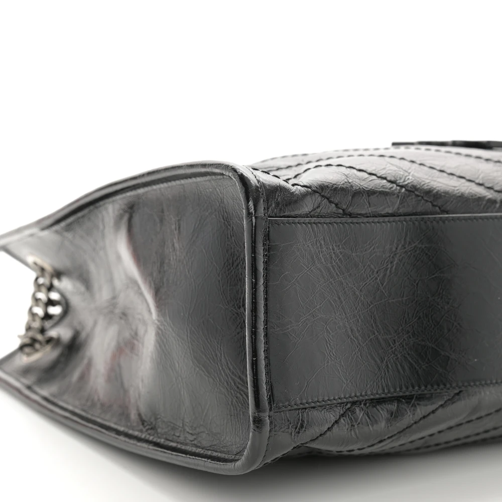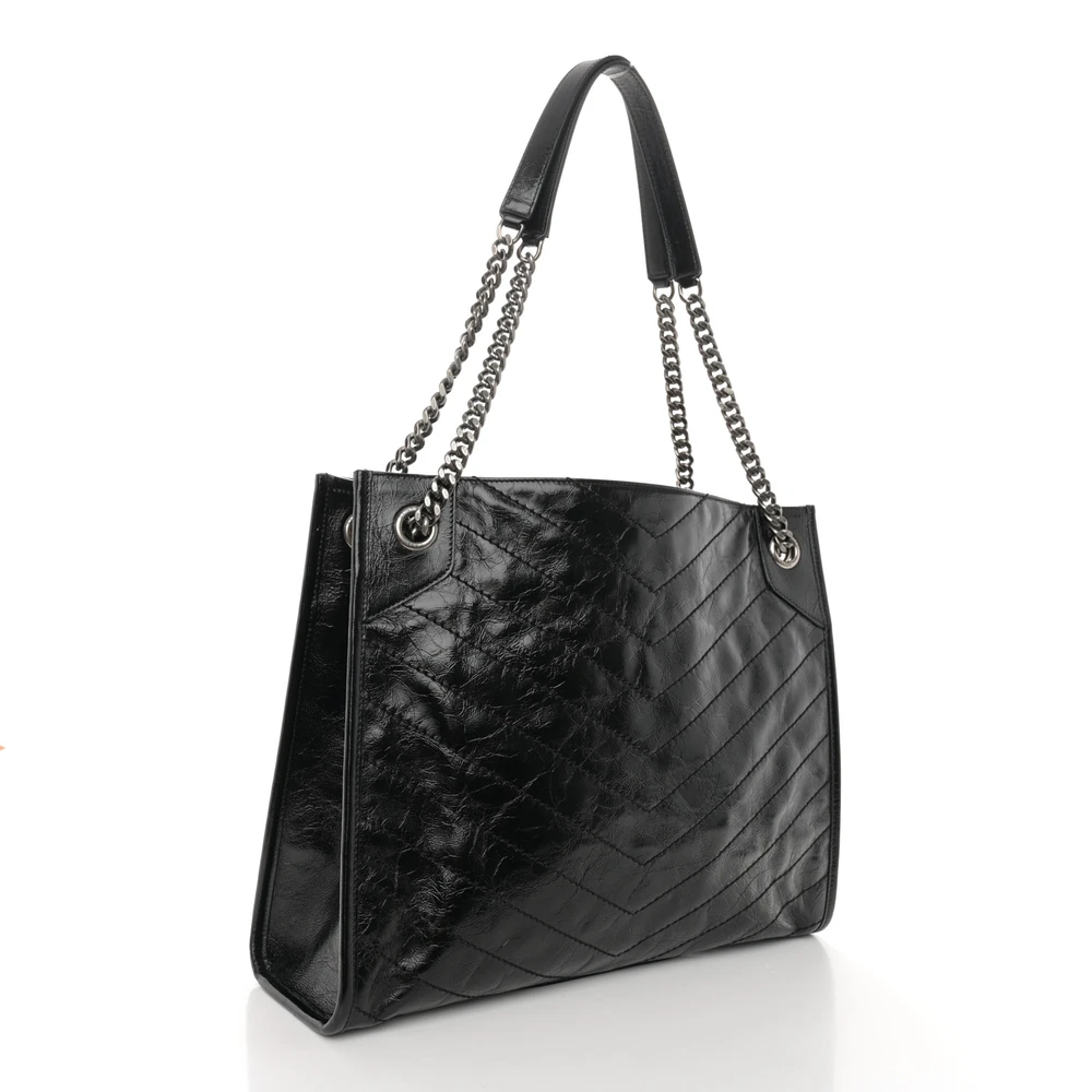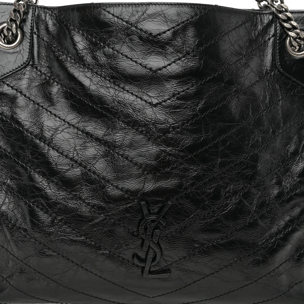 Saint Laurent Medium Niki Shopper Tote Black Crinkled Monogram Calfskin Matelasse Leather Silver Hardware