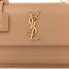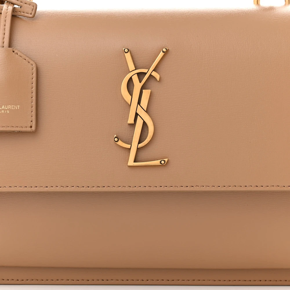 Saint Laurent Medium Sunset Satchel Natural Tan Smooth Monogram Calfskin Leather Gold Hardware