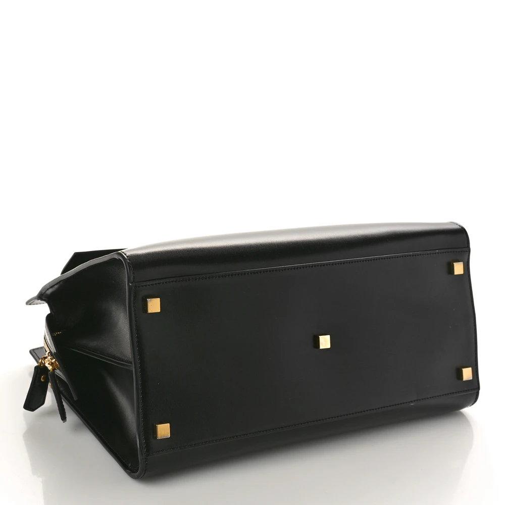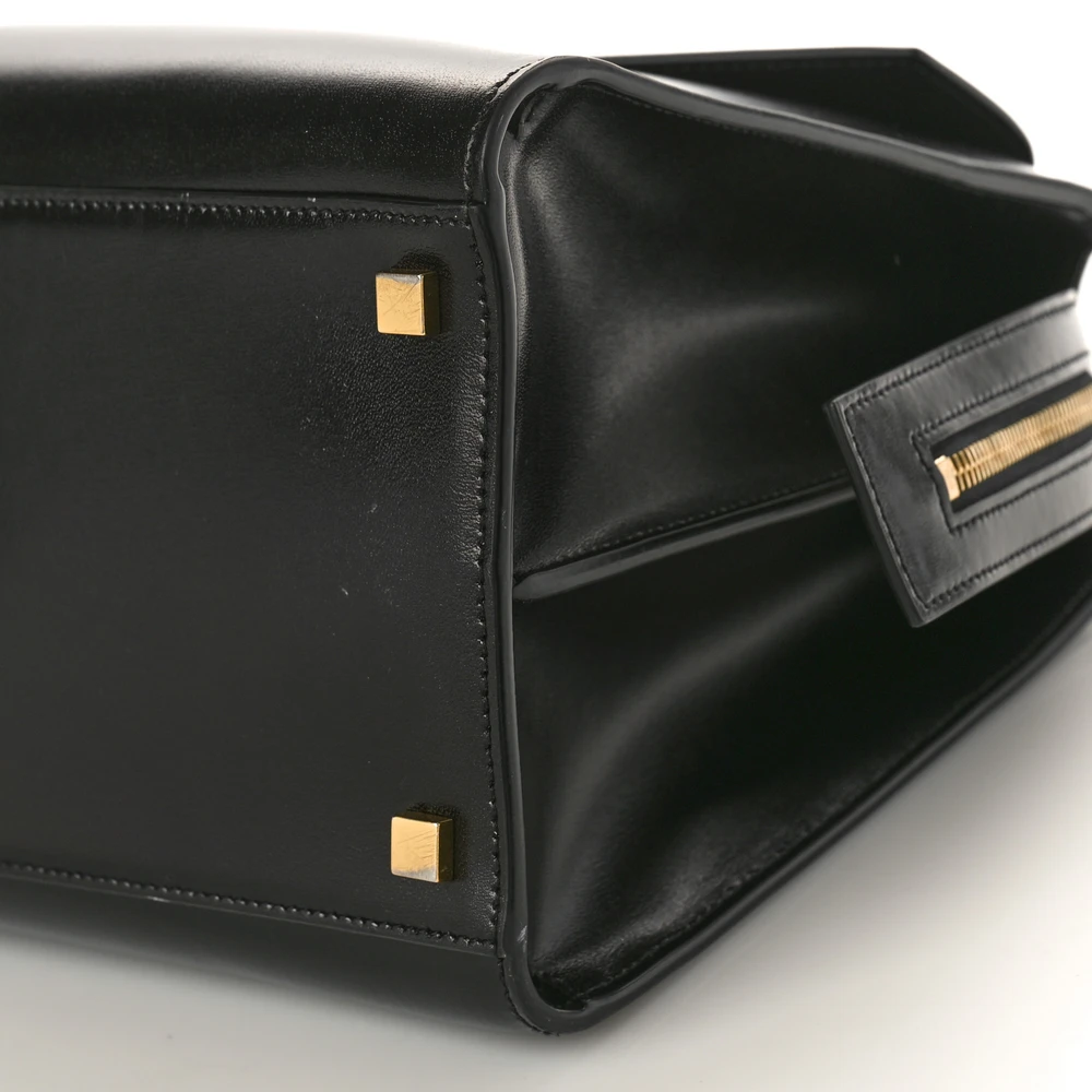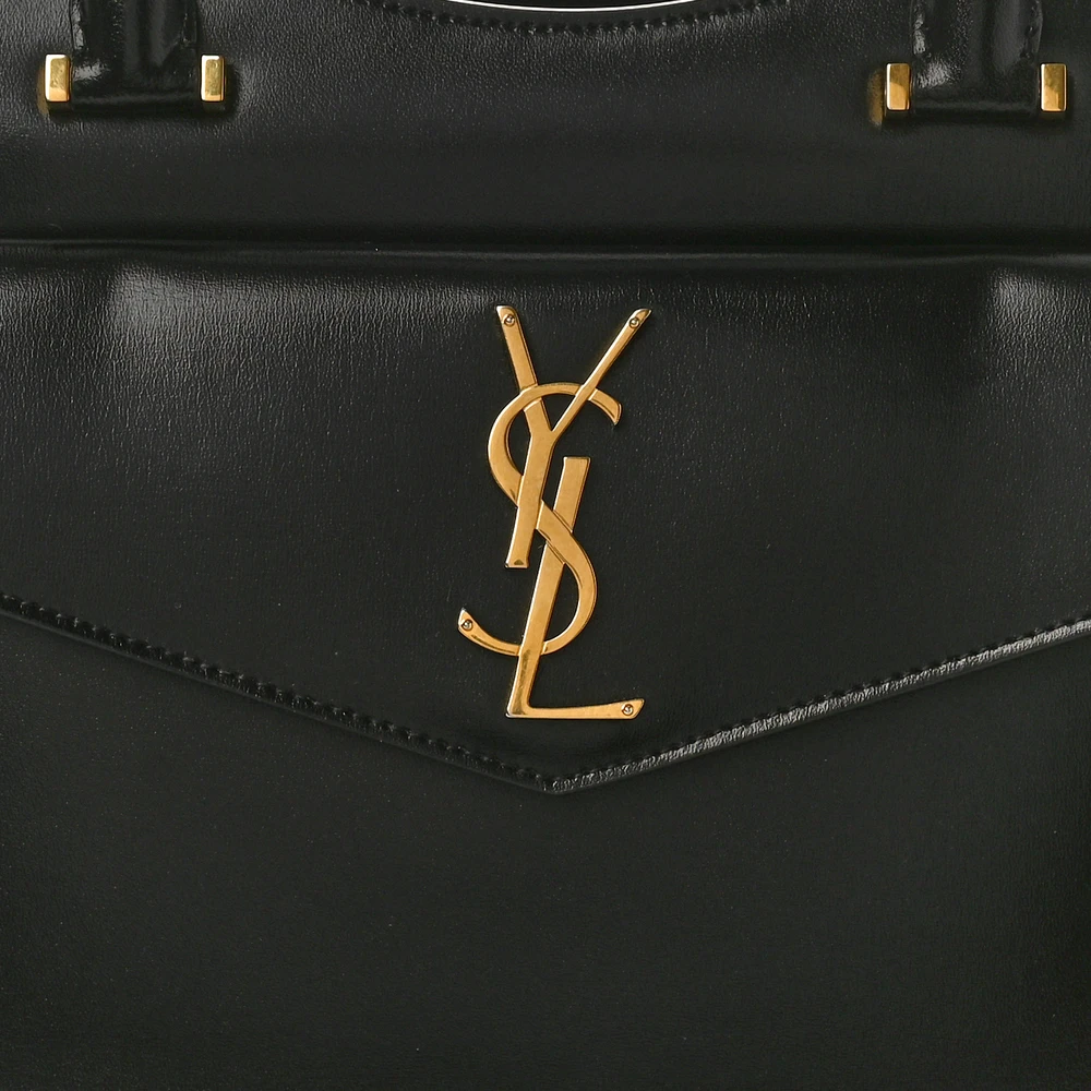 Saint Laurent Medium Uptown Tote Black Shiny Calfskin Leather Gold Hardware