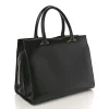 This Medium Uptown Tote in Black features Shiny Calfskin Leather with gold hardware. Its structured silhouette and spacious interior make it perfect for work or travel. A timeless design that combines sophistication with practicality, it’s an essential for modern elegance.