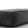This Saint Laurent Mini Lou Camera Bag in Black is crafted from Monogram Grain De Poudre Matelasse Leather and features silver hardware. Its petite size is perfect for essentials, while the adjustable strap adds versatility. The iconic YSL logo adds a signature touch to this chic and practical accessory.