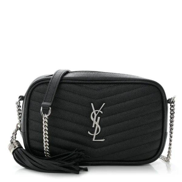 Saint Laurent Mini Lou Camera Bag Black Monogram Grain De Poudre Matelasse Leather Silver Hardware