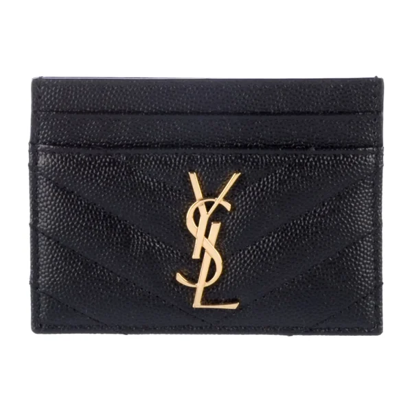 Saint Laurent Small Card Holder Black Saffiano Printed Leather Gold Hardware