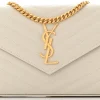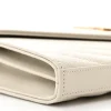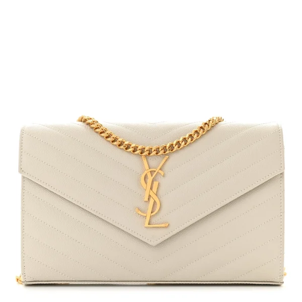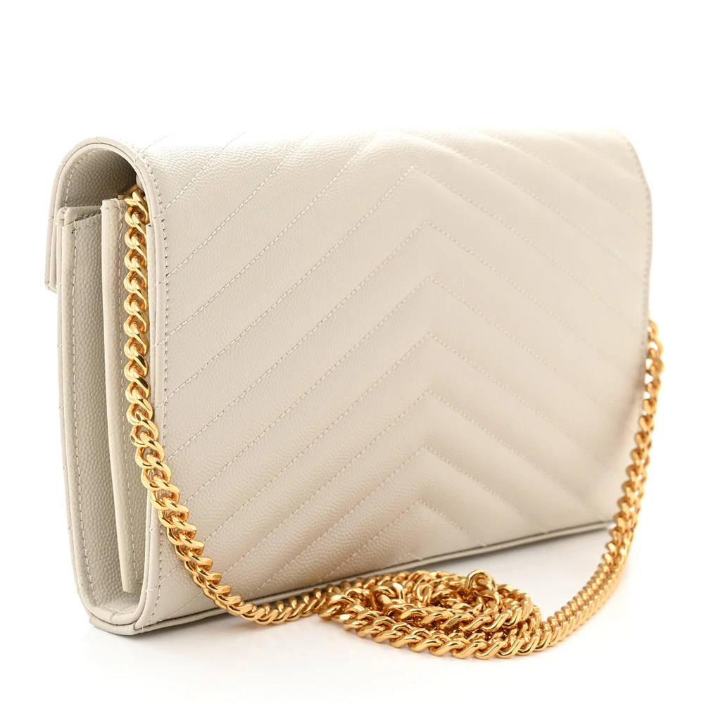 Saint Laurent Small Chain Wallet Crema Soft Chevron Monogram Grain De Poudre Matelasse Leather Gold Hardware
