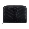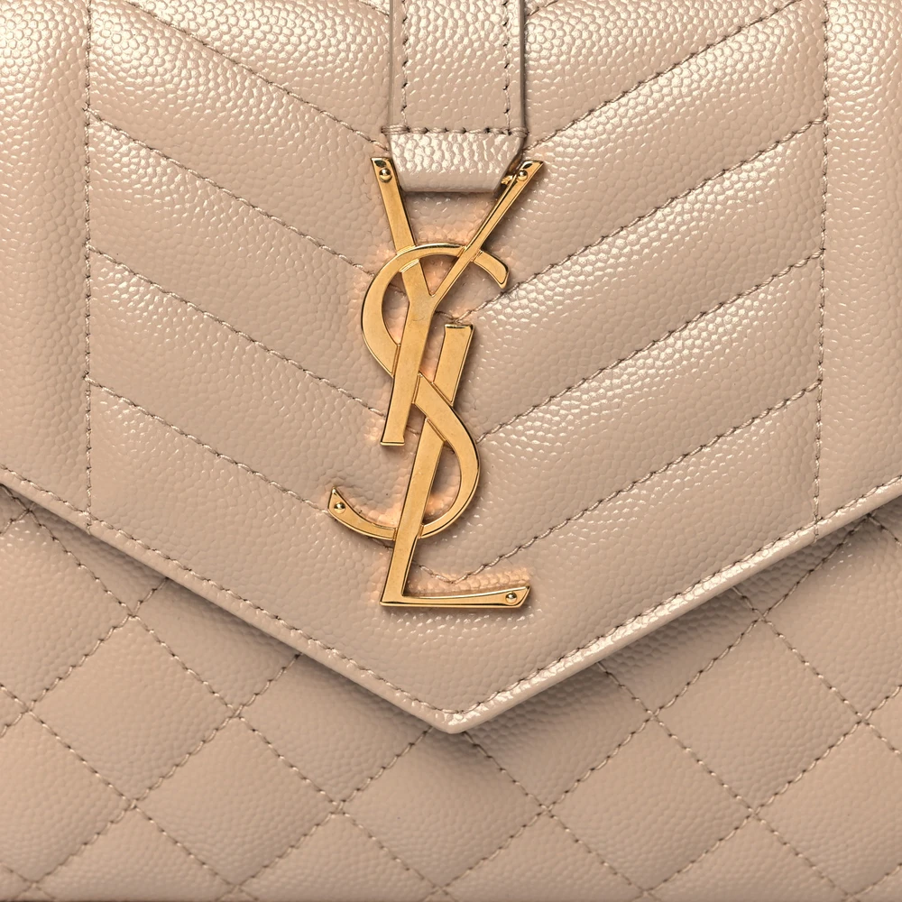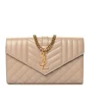 Saint Laurent Small Chain Wallet Dark Beige Triquilt Monogram Grain De Poudre Mixed Matelasse Leather Gold Hardware
