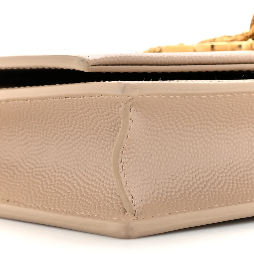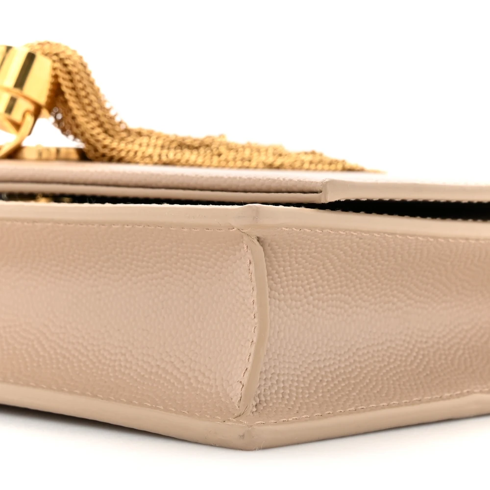 Saint Laurent Small Kate Tassel Chain Wallet Dark Beige Classic Monogram Grain De Poudre Leather Gold Hardware