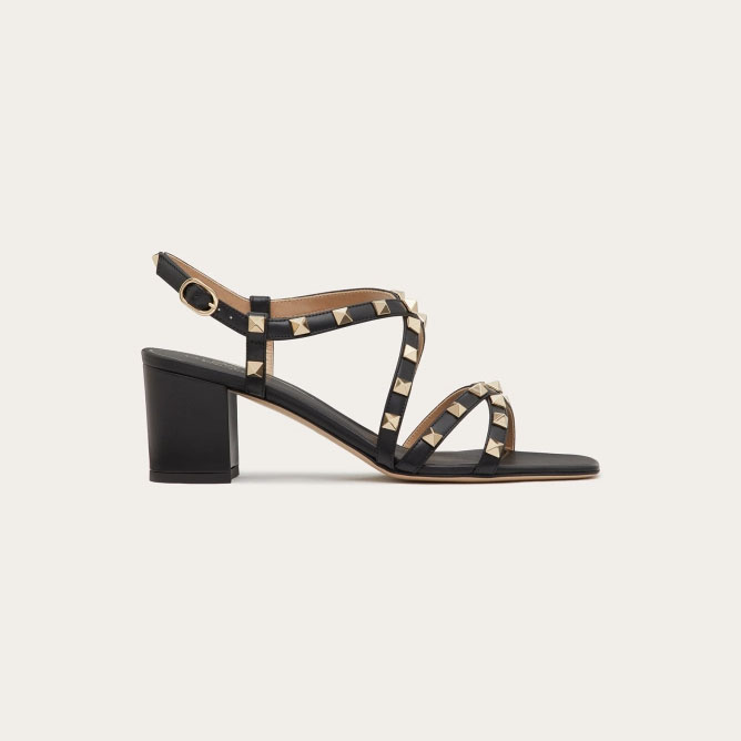 VALENTINO Black Calfskin sash sandals (heel height 6cm)