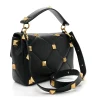 Valentino Garavani Large Roman Stud Shoulder Bag Black Grained Calfskin Leather Brass Hardware