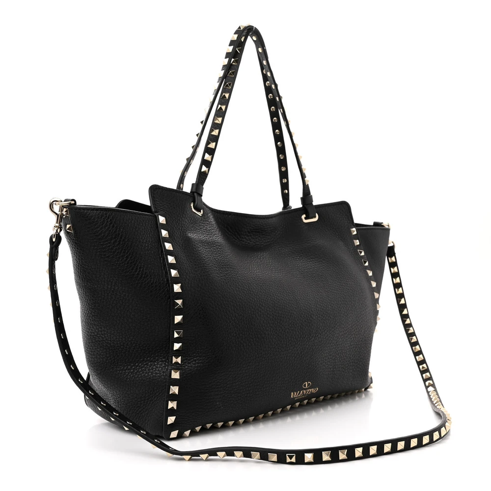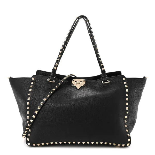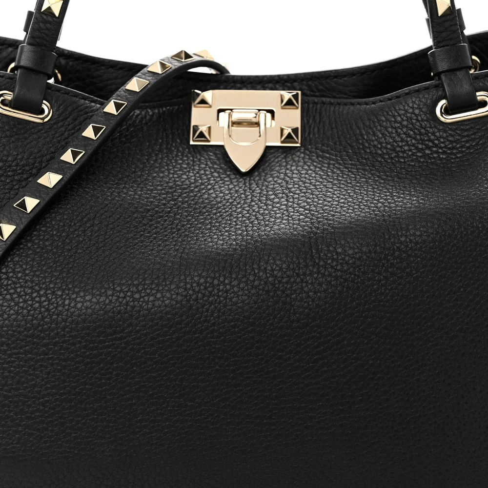 Valentino Garavani Medium Rockstud Tote Black Pebbled Calfskin Leather Gold Hardware