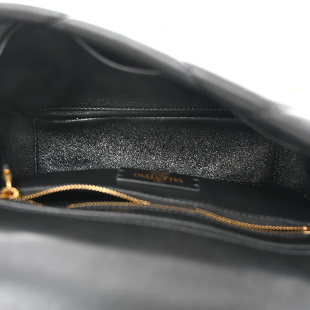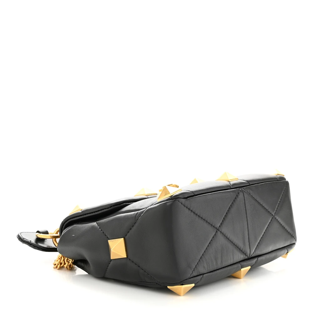 Valentino Garavani Small Roman Stud Shoulder Bag Black Nappa Leather Brass Hardware