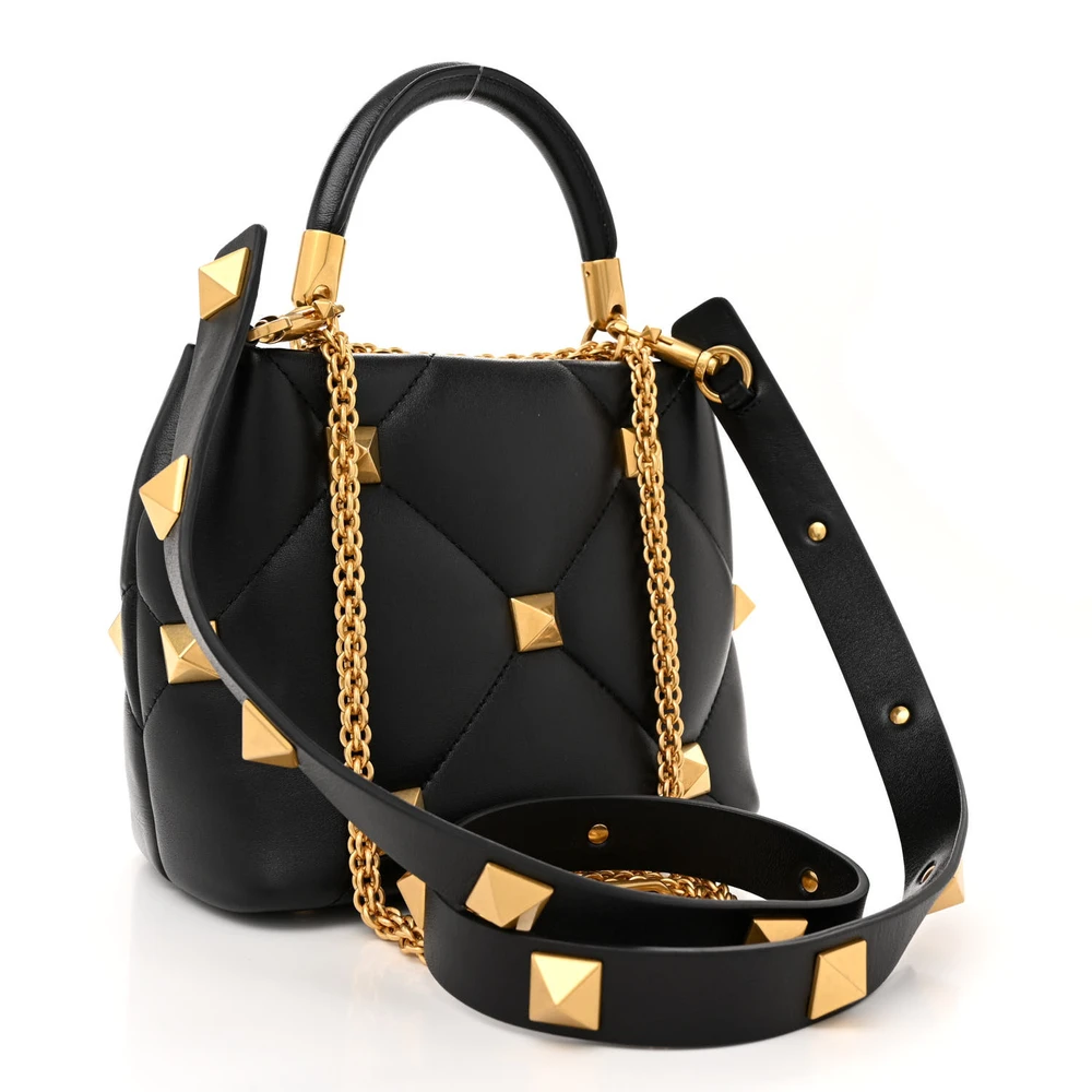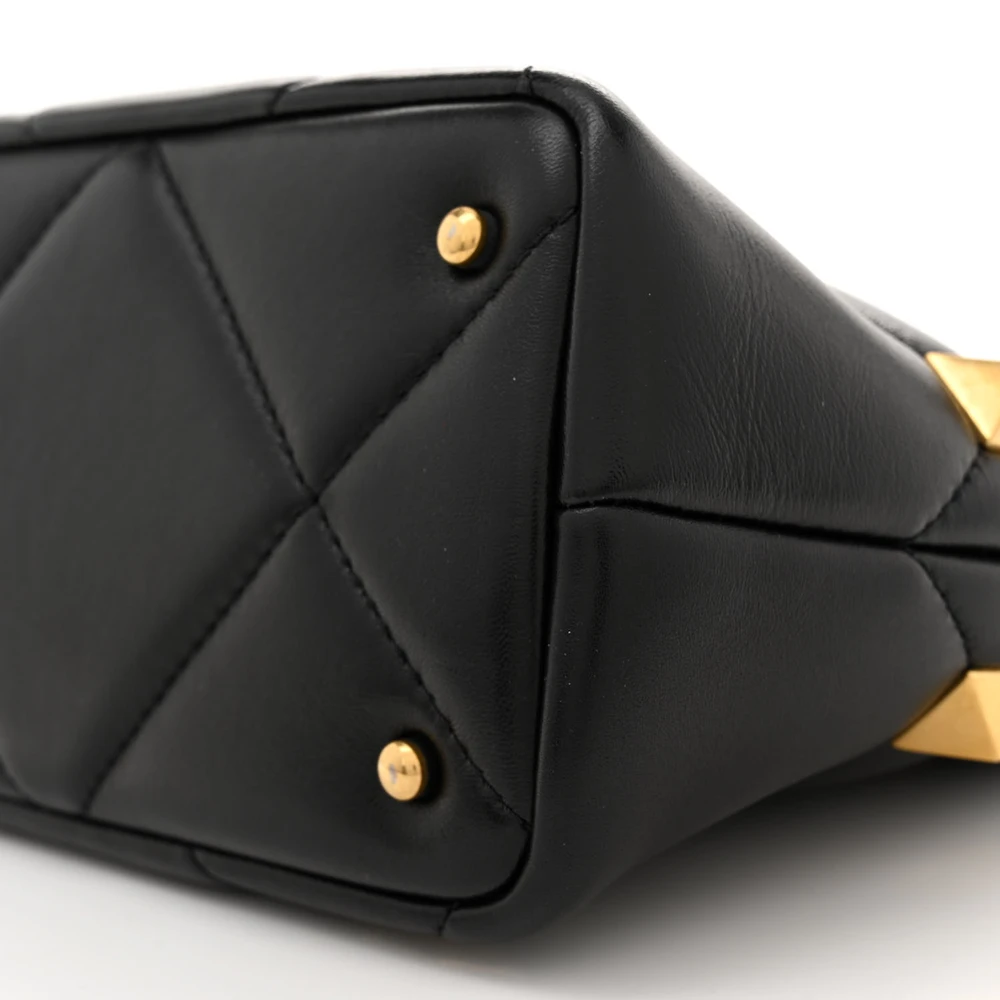 Valentino Garavani Small Roman Stud The Handle Bag Black Nappa Leather Gold Hardware