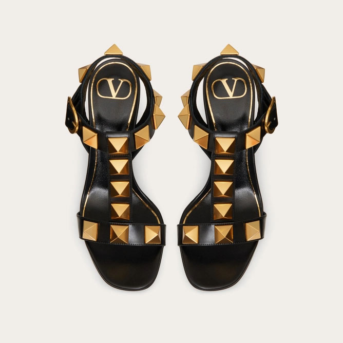 VALENTINO Rivet calfskin platform sandals (heel height 6cm)