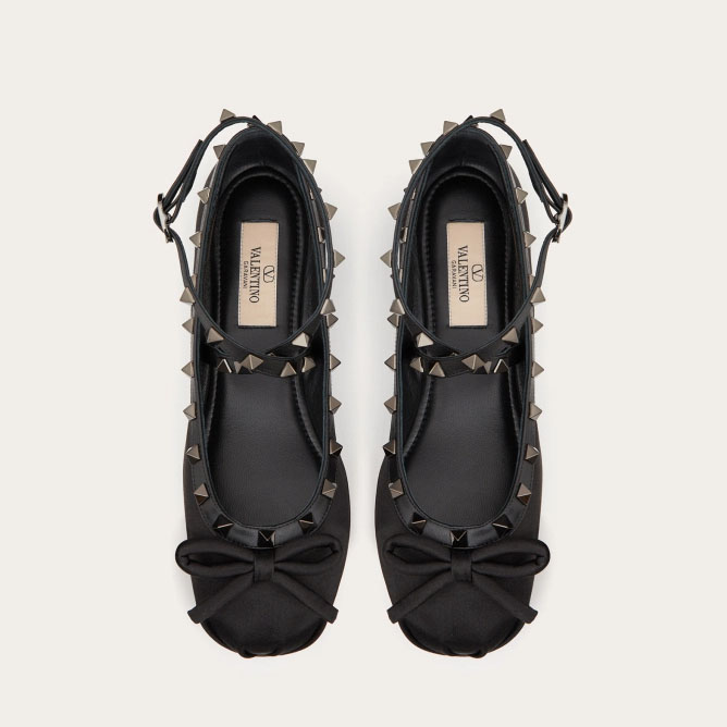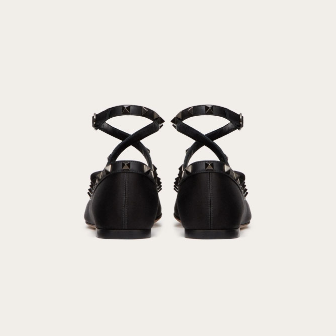 VALENTINO Rivet satin black ballet flats shoes