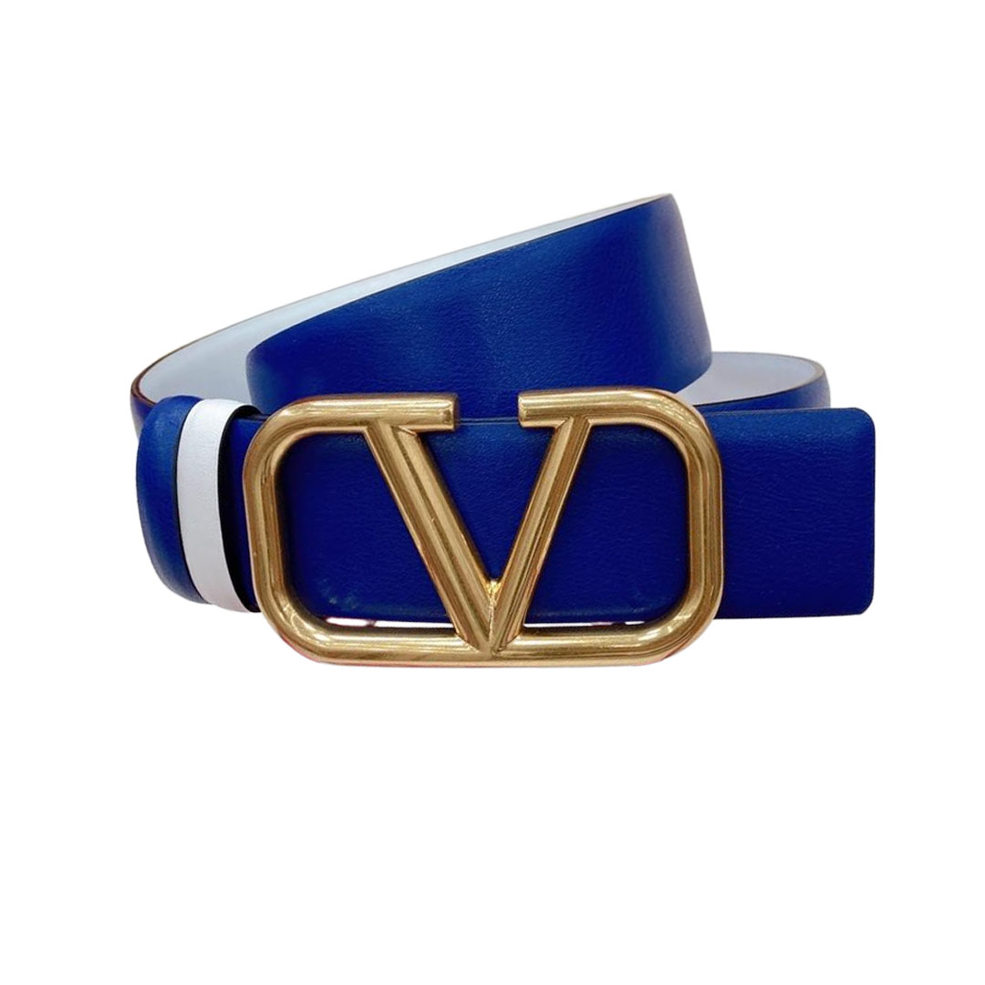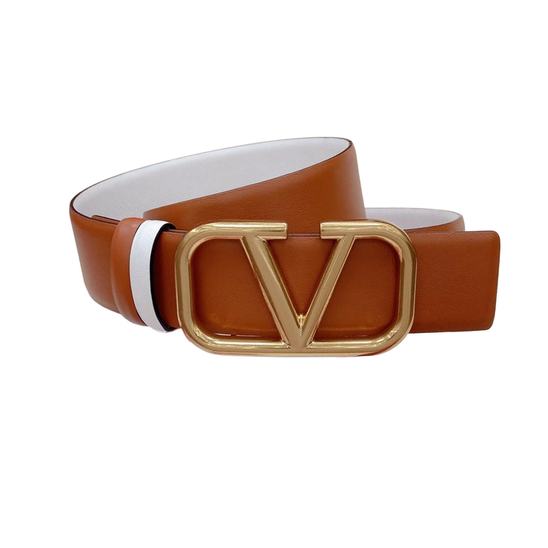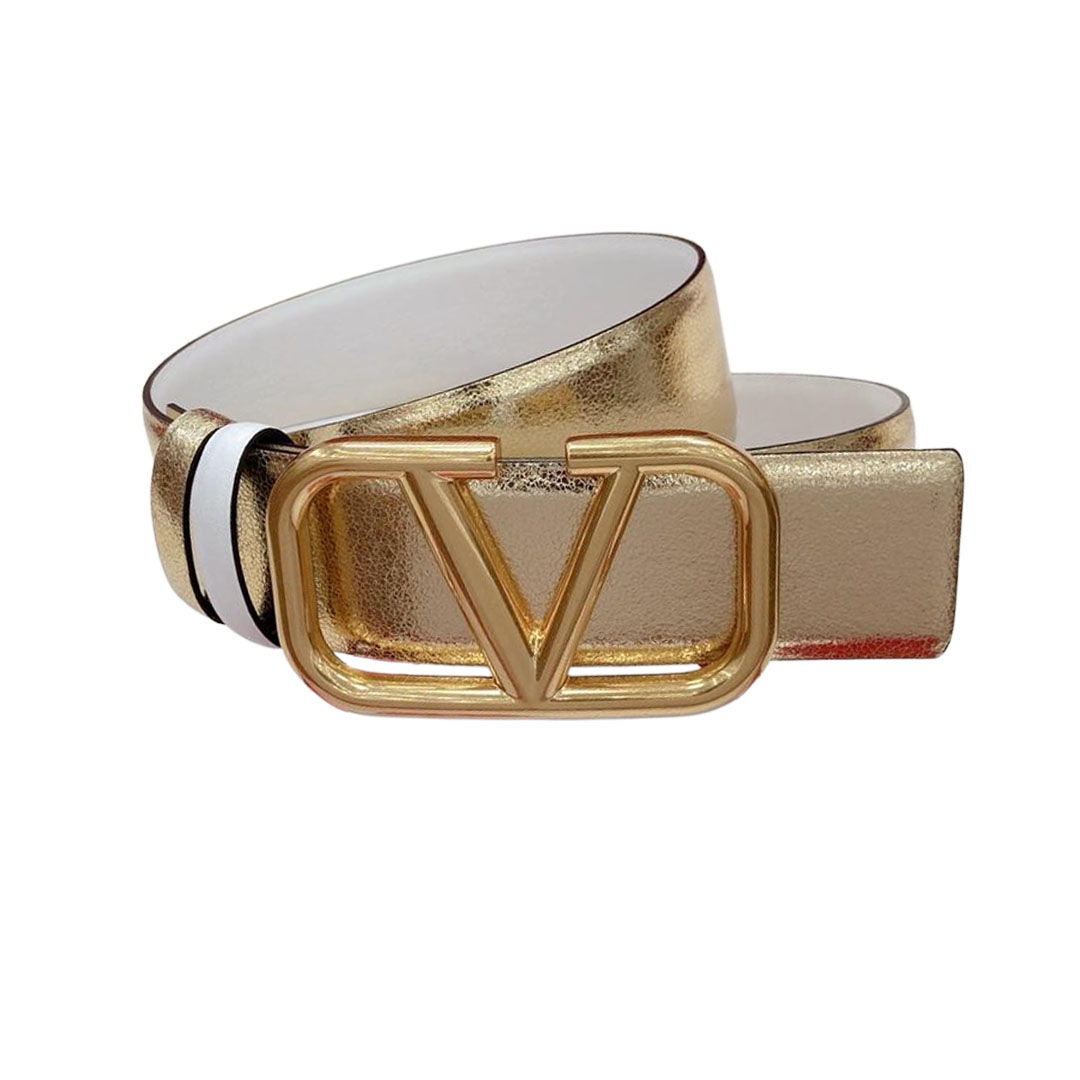 Valentino V Buckle Belt In Green/Light Green/Red/Blue/Black/Brown/Pink/Nude/Gold Black/Gold White Calfskin With Gold Hardware 40mm