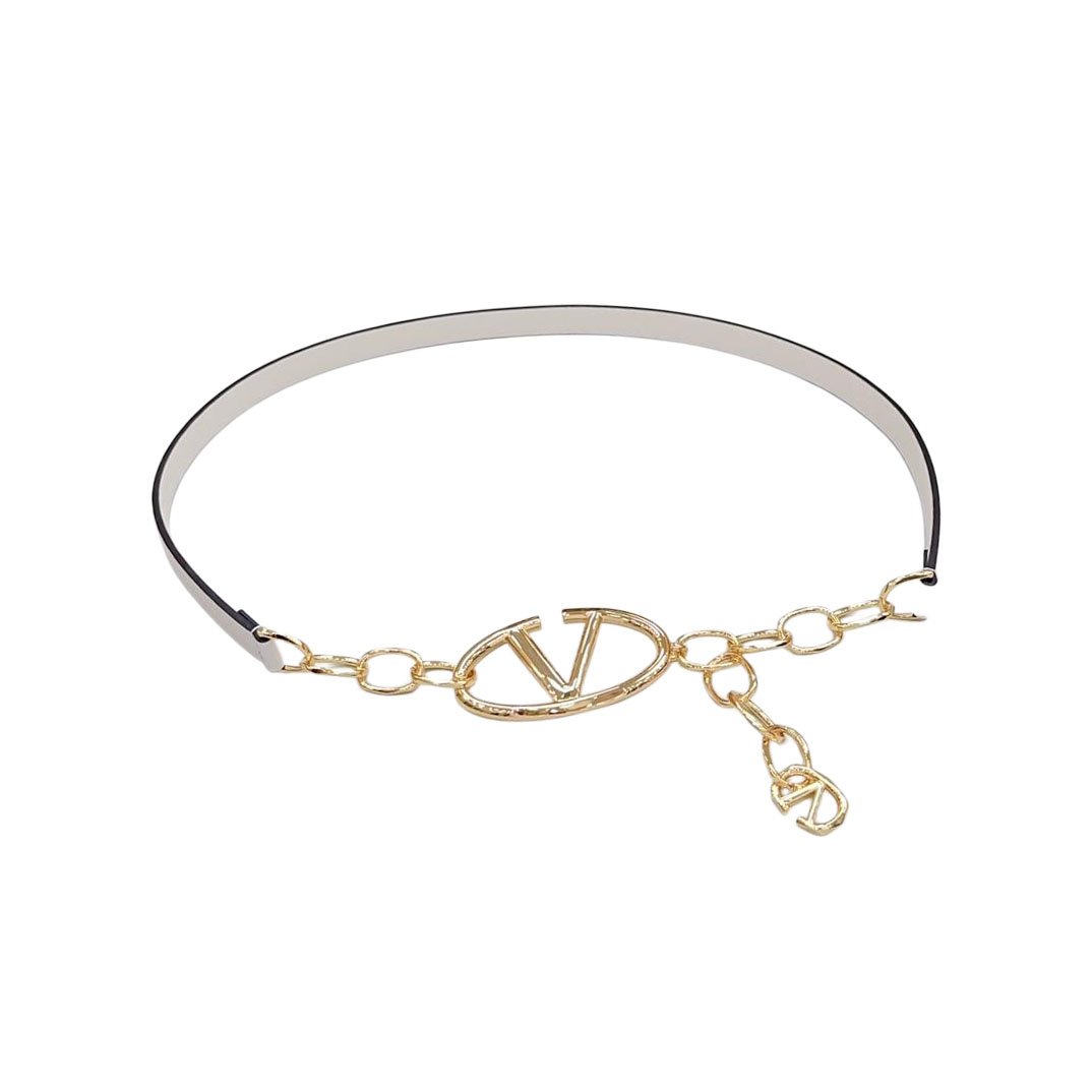 Valentino V Buckle Chain Belt In Black/White/Nude Calfskin With Gold Hardware
