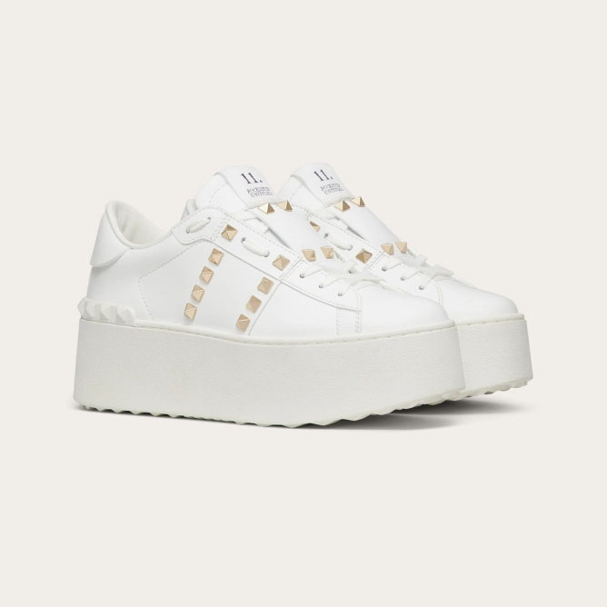 VALENTINO Women’s calfskin and metallic platform sneakers