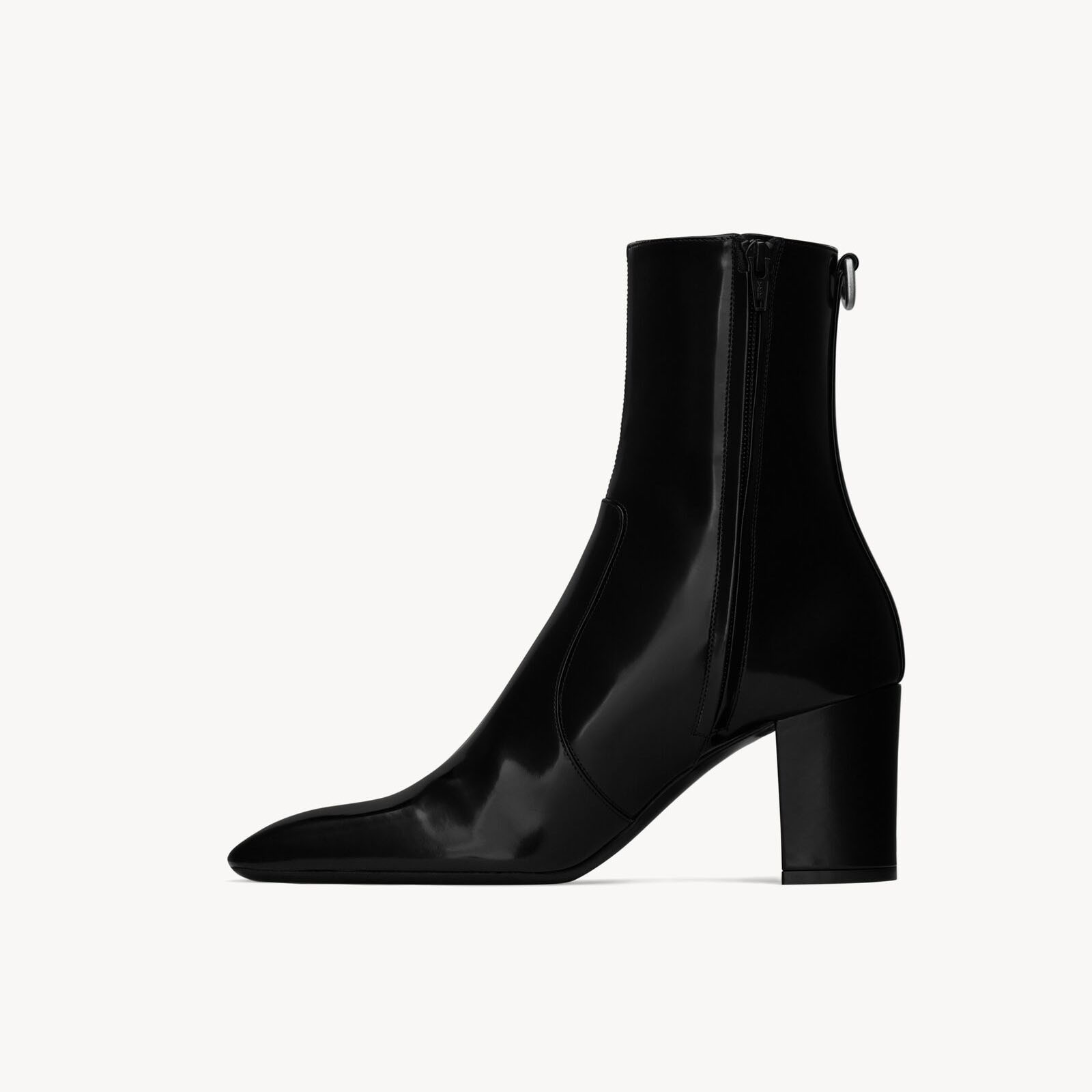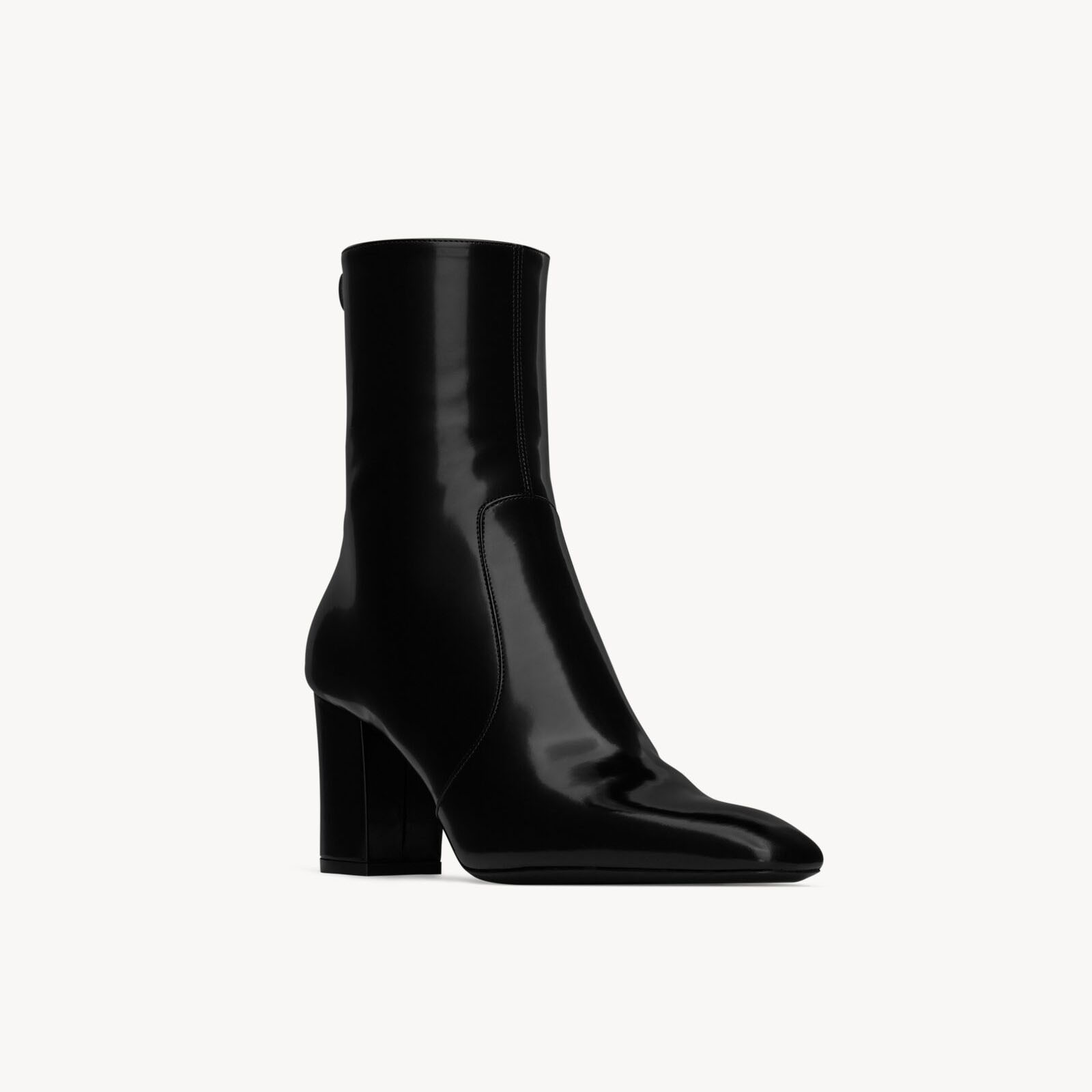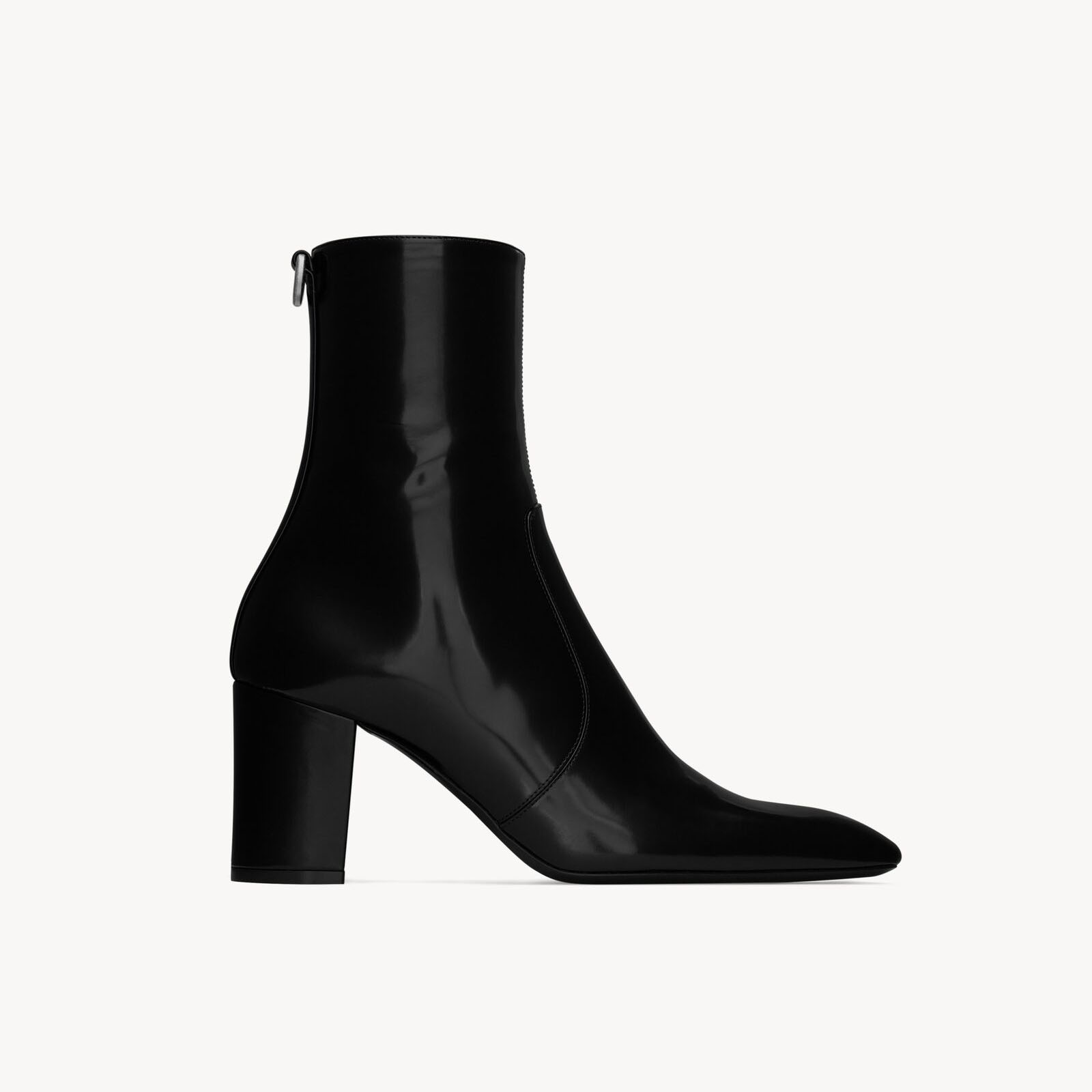 Yves Saint Laurent black mirror leather ankle boots