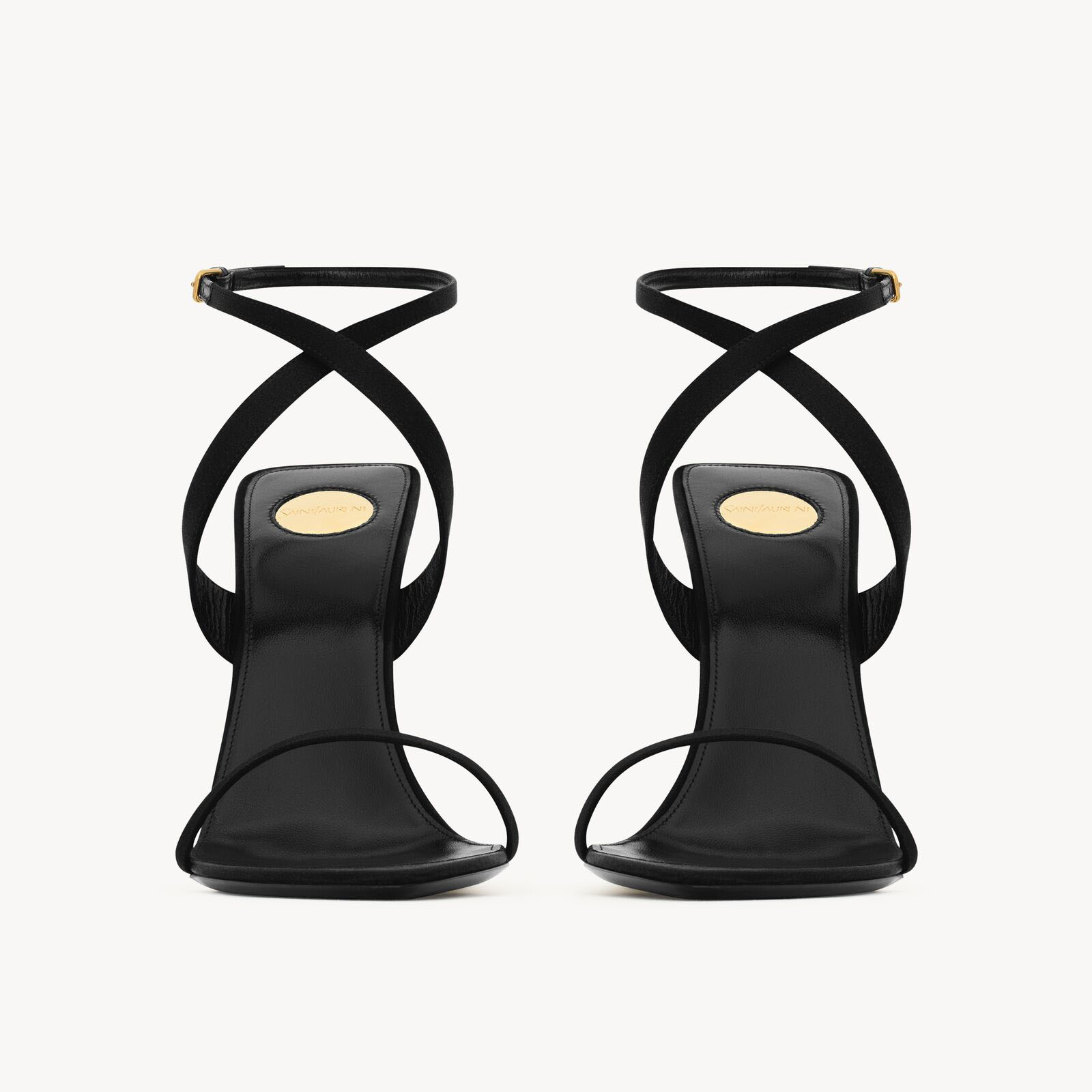 Yves Saint Laurent Crepe satin and metallic leather wedge heel sandals